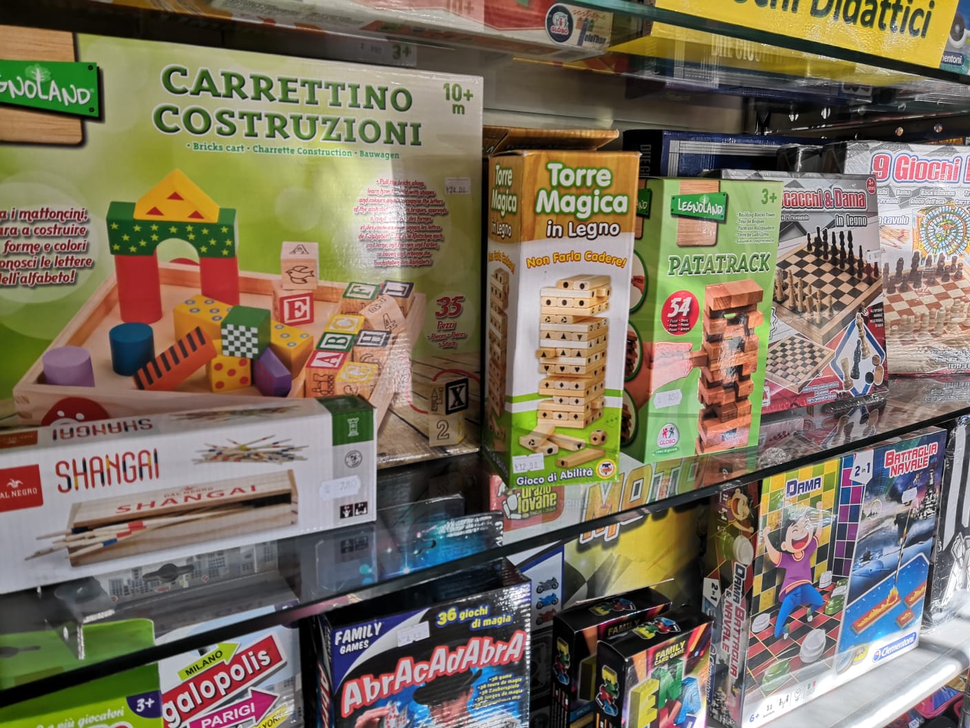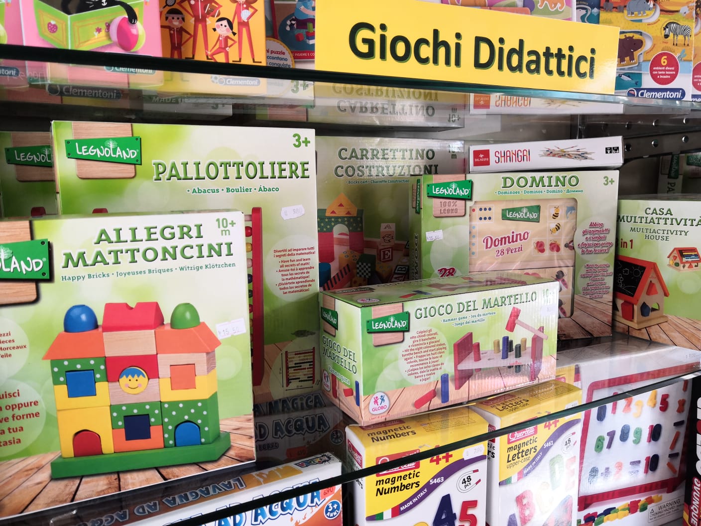 Per rendere più affascinante il luogo ai piccoli studenti e non, una bella esposizione di giocattoli, puzzle, giochi di società, palloni e tanto altro sempre con personaggi e marche del momento, rende l'ambiente pieno di colori accogliente e con tante idee regalo.